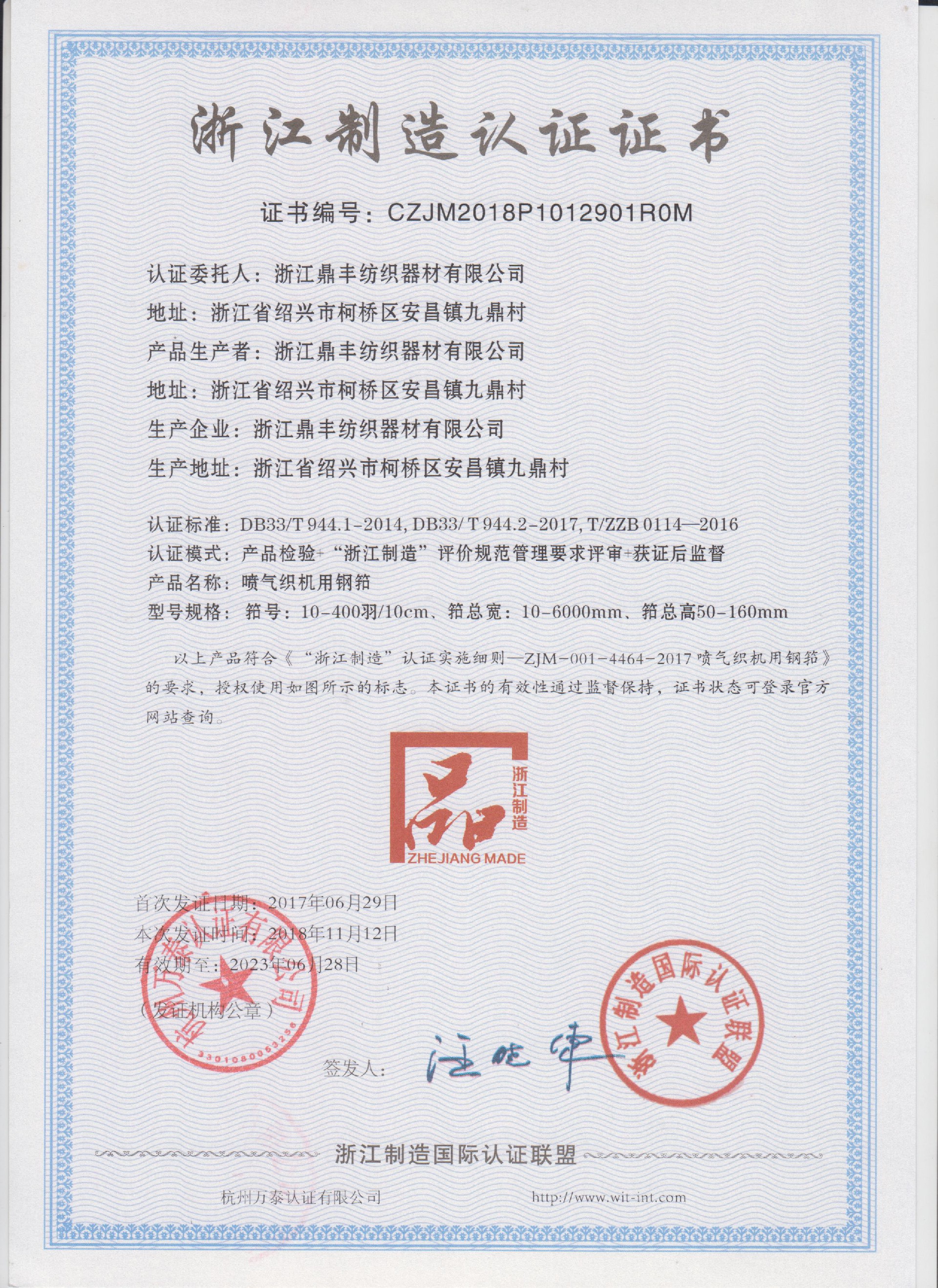 浙江鼎豐紡織器材有限公司始建于1986年,是一家專業(yè)生產(chǎn)各類(lèi)無(wú)梭織機(jī)用鋼筘:噴氣筘、噴水筘、劍桿筘、其他類(lèi)型鋼筘;鋁合金綜框、鋼片綜、停經(jīng)片、經(jīng)軸、織軸、卷布輥等產(chǎn)品及配件的民營(yíng)企業(yè)。